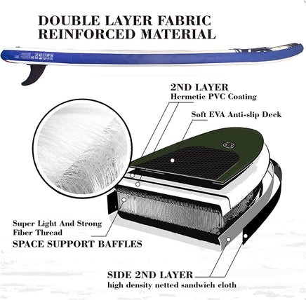 - With 2 plies high-density drop stitch and pro laminate fusion material, and stability with the highest quality material. This board can handle up to 350 lbs of weight.
